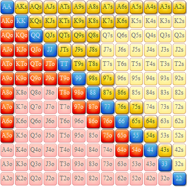 Mi intención era que las tablas fuesen lo mas visuales posibles, de modo que tuvieran una estructura similar a la cuadrícula estándar de los rangos en Holdem.