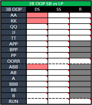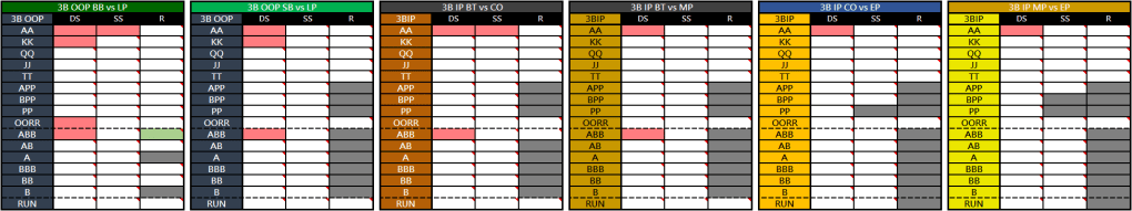La segunda fila incluye un cuadro para las principales situaciones de 3-Bet y defensa, tanto con posición como sin posición